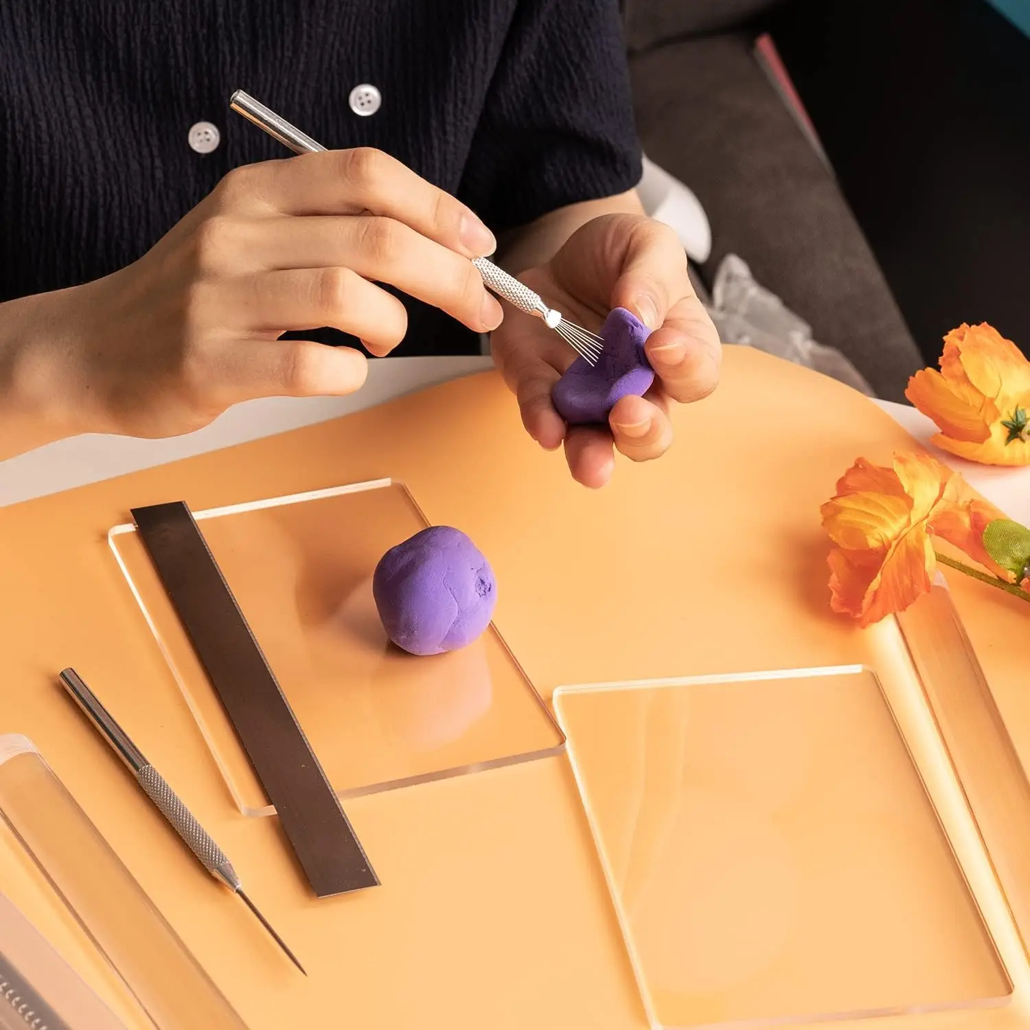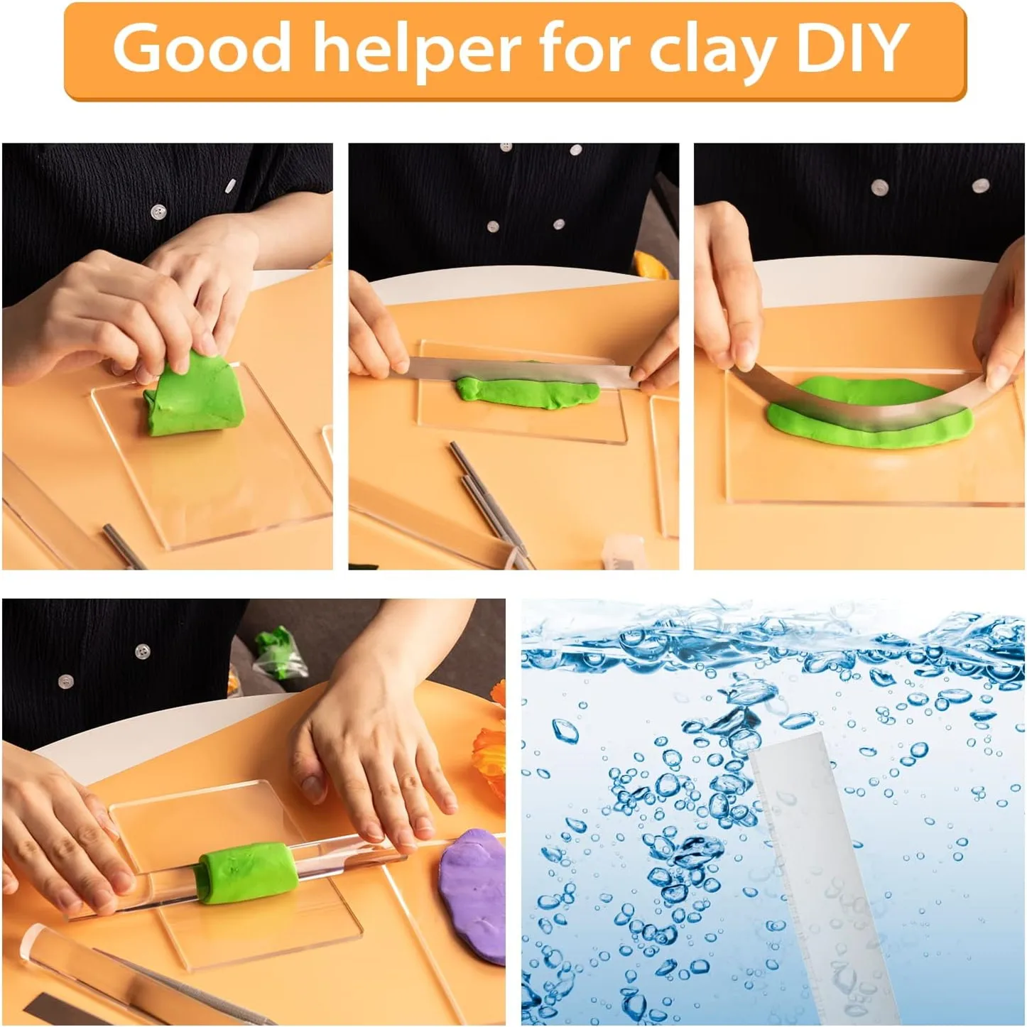 - Acrylic Roller Sheet: Create smooth and uniform clay sheets effortlessly using the included acrylic roller sheet. Its smooth surface prevents sticking and ensures consistent thickness for your projects.